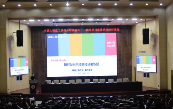 10月28日下午,湖南省高校优秀思想政治工作者名师工作室主题宣讲暨“卓越大讲堂”辅导员赋能讲坛在图书馆一报告厅顺利开展。本次活动由学生工作部部长刘琤主持,特邀中国心理学会注册督导师湖南工商大学心理中心主任戴吉博士,为全校辅导员、班主任带来《辅导员日常谈话技能训练营》专题讲座。